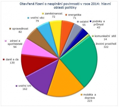 Nel 2014, analogamente al 2013, i settori politici con il maggior numero di casi di infrazione aperti erano ambiente, trasporti e mercato interno e servizi.